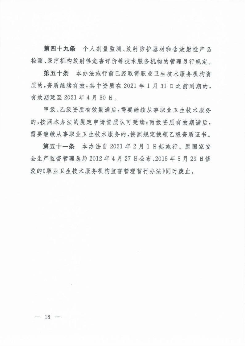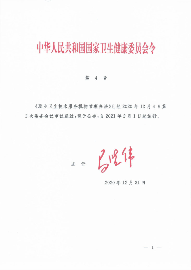 職業(yè)衛(wèi)生技術(shù)服務(wù)機構(gòu)管理辦法(國家衛(wèi)生健康委令第4號)